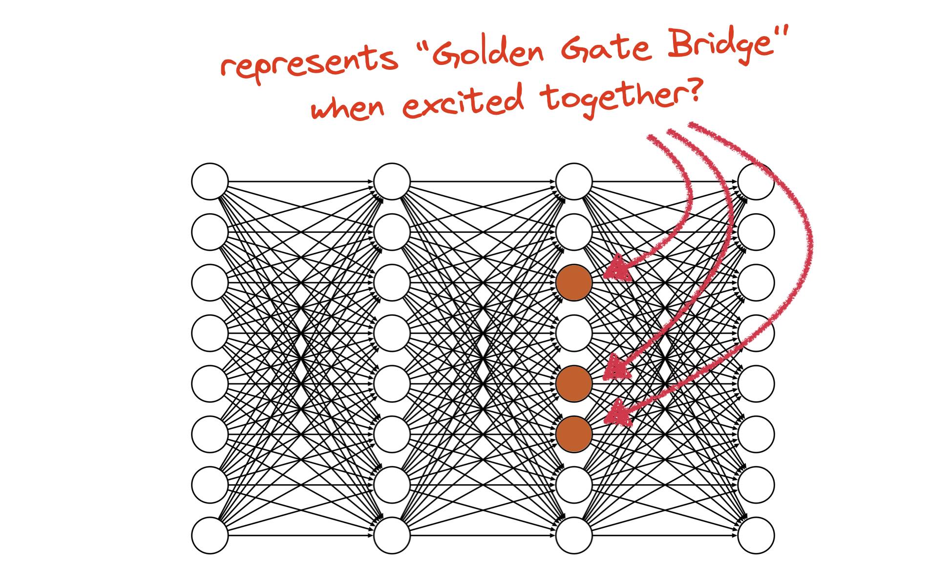 It seems like large neural nets have patterns of neural excitement that represent concepts, like for example the Golden Gate Bridge.