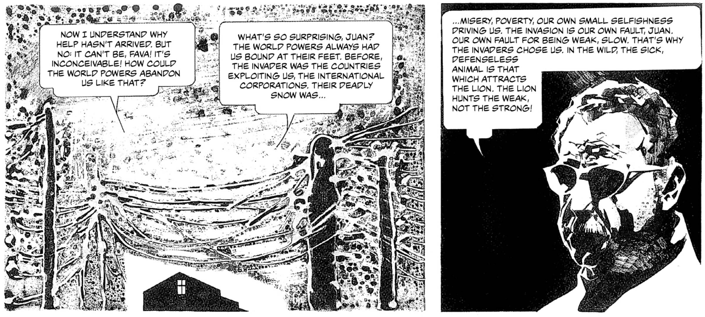 In the original Eternaut, “the North” is a distant ally attacking the aliens with nuclear missiles. In the reboot, the northern powers have negotiated a separate peace with the aliens and abandoned the South, without even a warning.