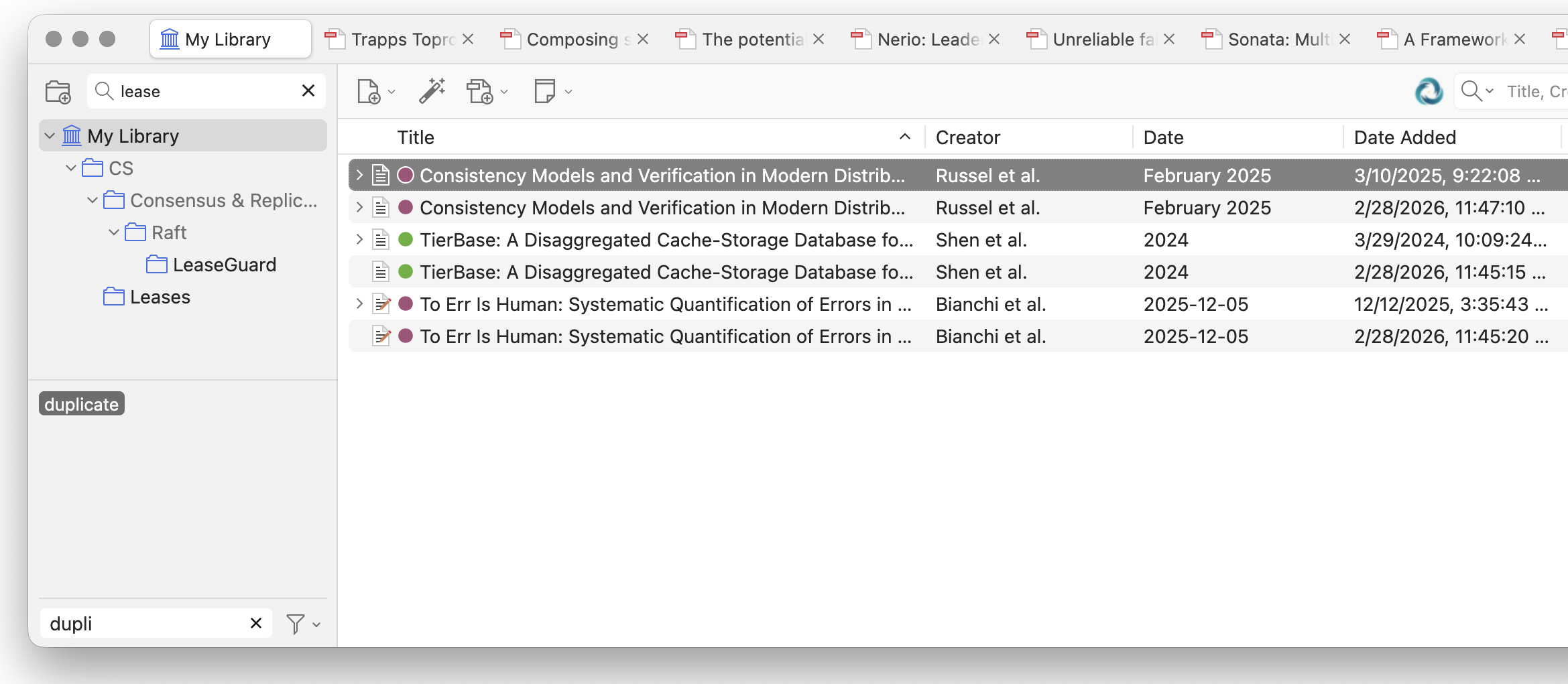 My usual research workflow is to stumble upon a paper I want to read, add it to Zotero with the Chrome extension, and mark it as “to-read” so it can join its hundreds of unread friends. Then a day or two later I’ll stumble upon the same paper again, forget that I’ve added it, and add it again. (At least I assume it’s a day or two later—if I forgot even quicker, how would I know?)